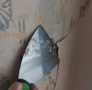 Next, we find ourselves knee-deep in the delightfully messy task of stripping old wallpaper from the walls. At first glance, it might seem tedious, but there’s something incredibly rewarding about it. Layer by layer, as we peel back the old, we’re uncovering stories and history that have been hidden for years. Each layer reveals a little piece of the croft's past—its style, its trends, and even signs of past homeowners' creativity. It’s like a fascinating journey through time, and honestly, it's quite fun!
